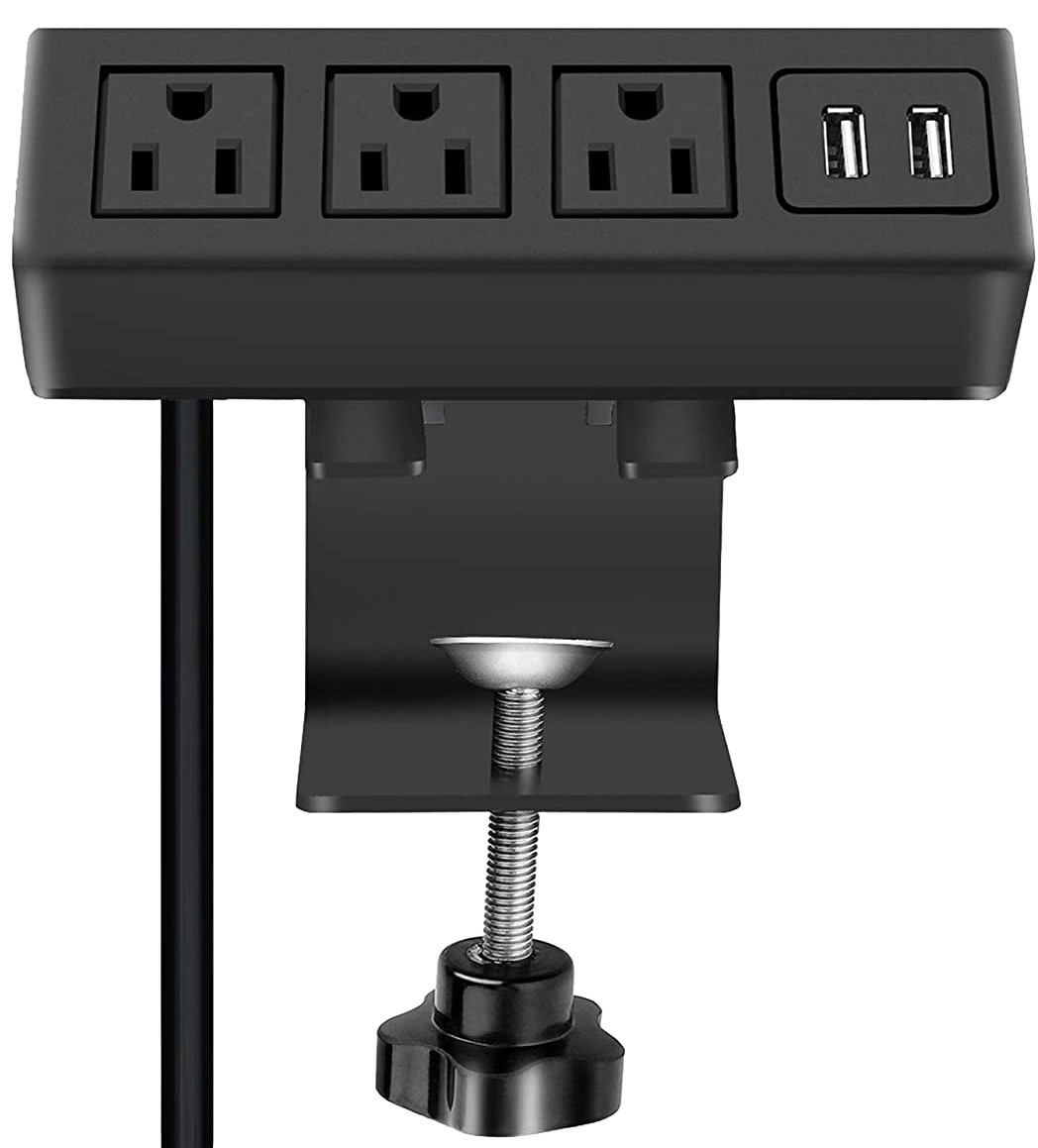 This clamp on plug is perfect for any desk. I have a portable workstation that I wheel room to room and now all I need to do is un plug one thing. All my tools can stay plugged into the strip. And my iPad stays charging (if needed) This would be great for college bound kids. Wish I found this sooner. Going to buy a few more